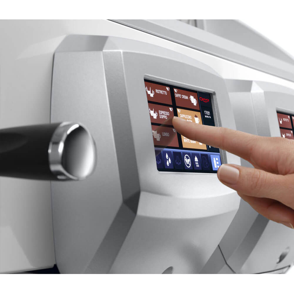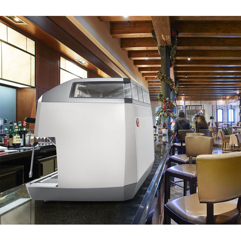 Ein modernes Design, mit herausnehmbaren Siebträger und dem italienischen Stil der traditionellen Espresso- Kaffeemaschinen. Integrierte und gekühlte Kaffeebohnenbehälter und die großen Touchscreen- Displays sind Teil des klaren Designs und stehen immer im Dialog des Benutzers und den Erwartungen des Kunden an einen guten Kaffee von einer Siebträger Espressomaschine.
