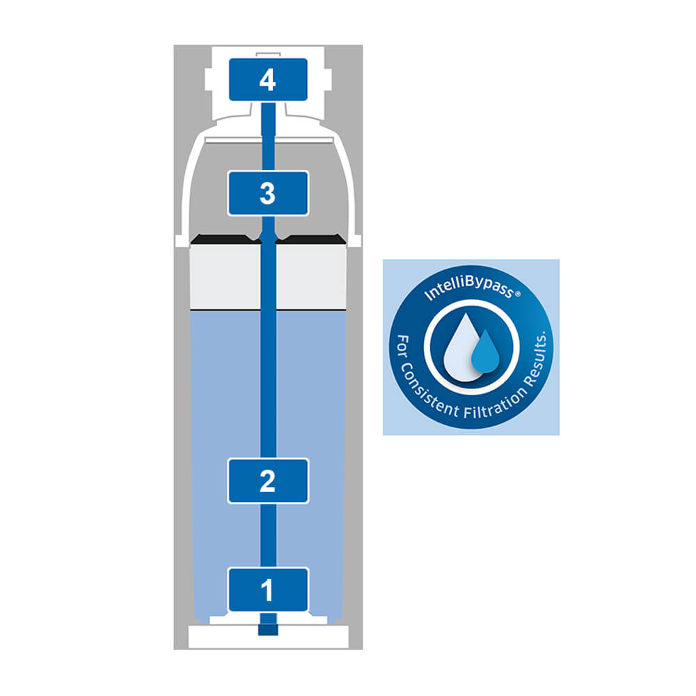Finally, a fleece retains any remaining fine particles. The unique IntelliBypass technology ensures a constant bypass water content that is independent of the volume flow. This ensures consistently high water quality, even with low water throughput.