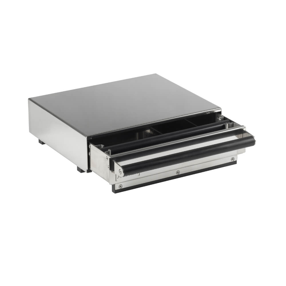 This high-quality knock-out container is suitable for all espresso machines and coffee grinders and is used to collect the knocked-out coffee grounds. The cutout on the front of the drip tray makes knocking out easier. The reinforced body is made of polished stainless steel sheet and is therefore easier to clean. The underside of the JoeFrex Drawer is provided with a molded rubber and is vibration-free and secure. The reduced, almost simple design was conceived for the professional use of an espresso machine, but is equally suitable for a modern kitchen with professional home barista requirements.