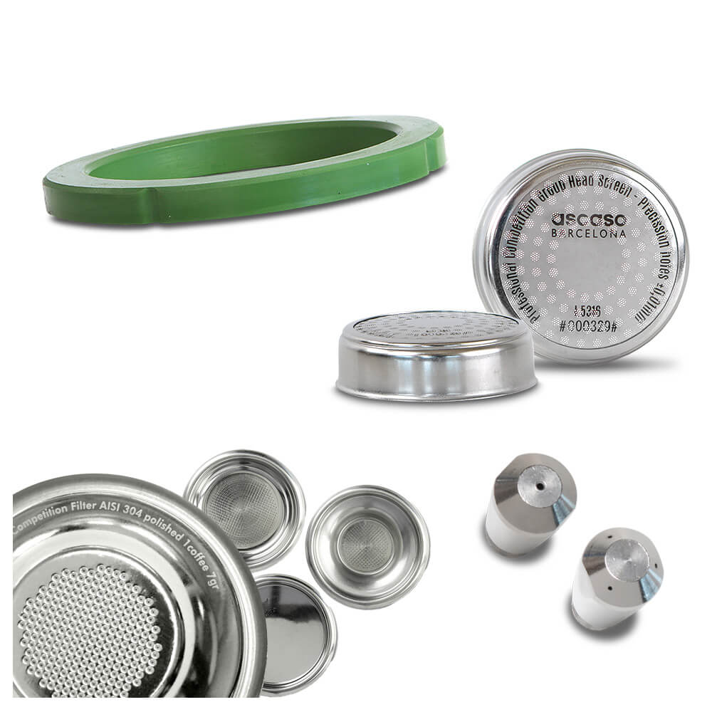 - Siebeinsätze: 7gr, 14gr, 18gr, 21gr und Blindsieb