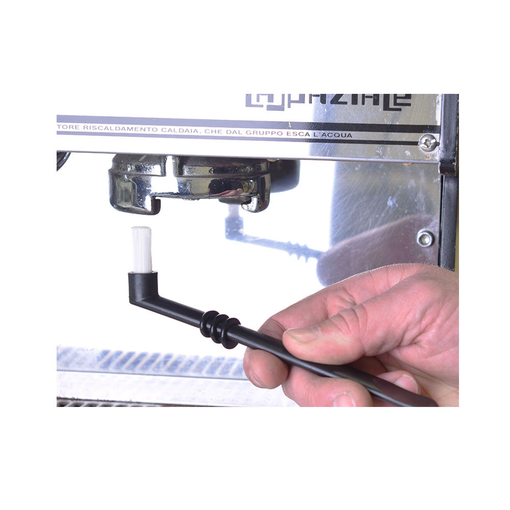 Uma importante tarefa de limpeza da máquina de café expresso é cuidar do grupo de preparo de uma máquina porta-filtro de café expresso. A escova do grupo JoeFrex foi desenvolvida especialmente para remover resíduos e pó de café do grupo cervejeiro e do circuito de uma máquina de café expresso. Esta escova de limpeza simples e funcional para o grupo cervejeiro é feita de plástico rígido preto e cerdas de náilon robustas. Se entrar muito café moído no porta-filtro, você pode remover facilmente o excesso de café moído com a colher pequena na ponta do cabo.