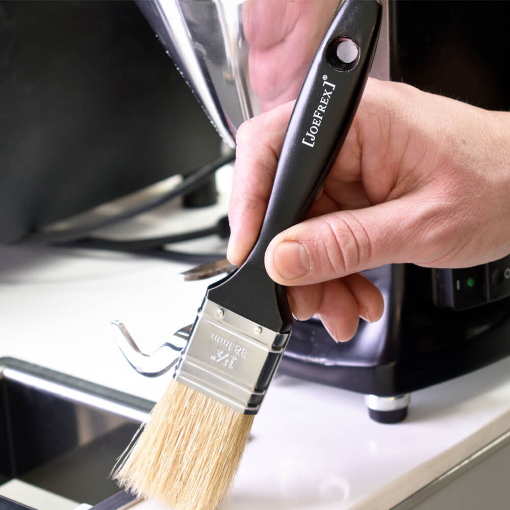 Uma tarefa importante na máquina de café expresso é o cuidado e a higiene. A escova para moinho JoeFrex Maxi foi desenvolvida especialmente para remover resíduos de café e pó de café do grupo cervejeiro e do moedor de café. Esta funcional escova de limpeza para máquina de café é composta por um cabo de madeira lacada com cerdas naturais. Se algum café moído permanecer no porta-filtro, você poderá remover o excesso de café moído com cuidado e facilidade.